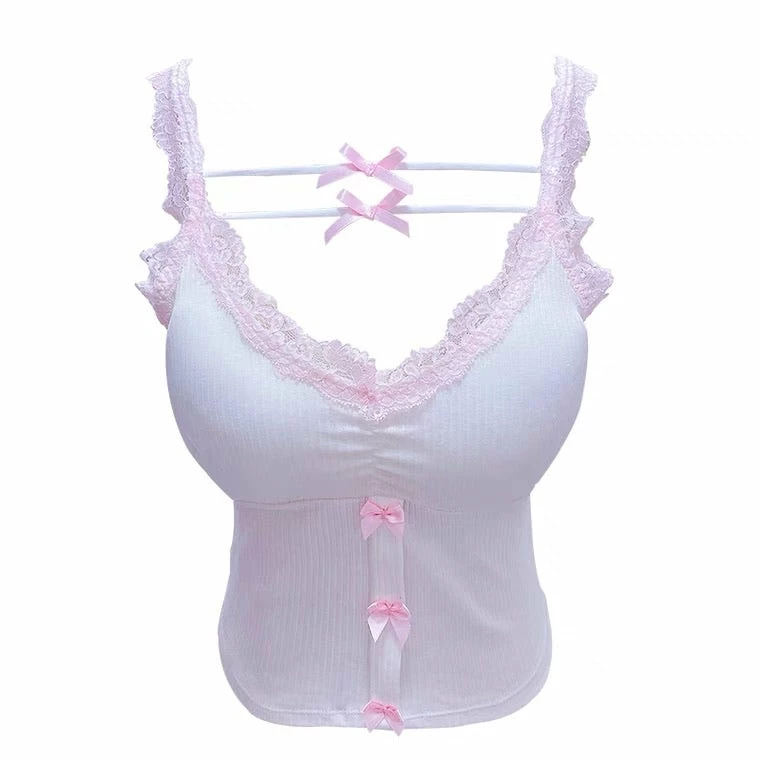 EverythingCuteClub Bowknot Double Line Pink/white Camisole Sling Tops Slip Vest
