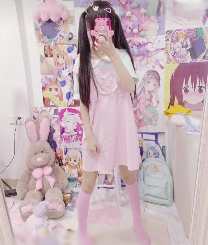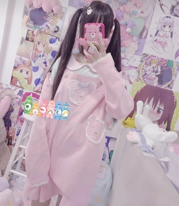 pink dress is with bear button