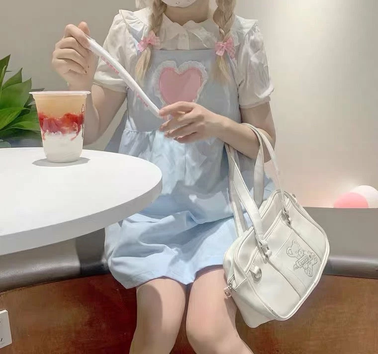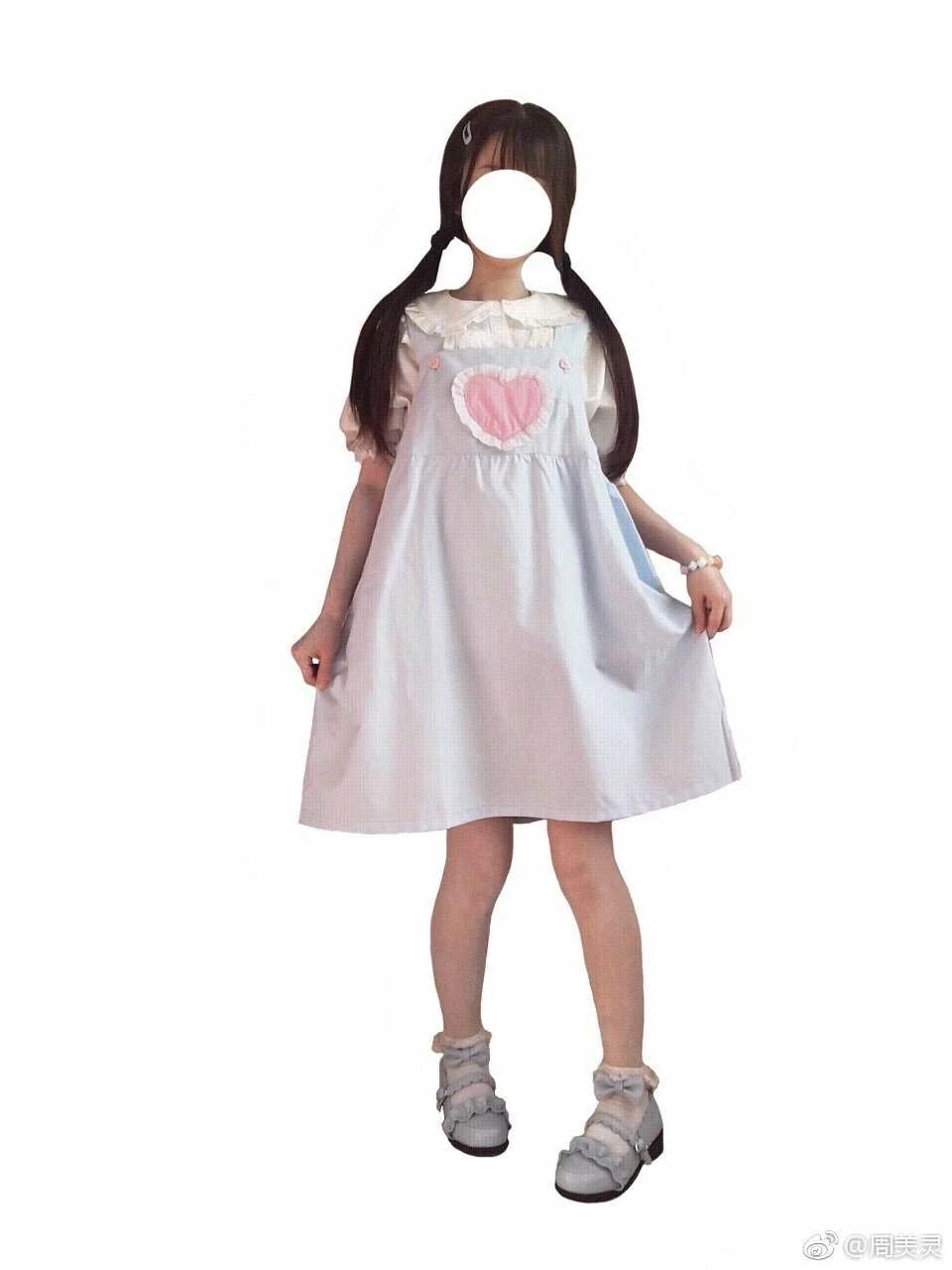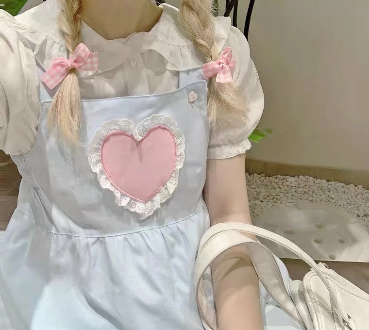 blue dress is with heart button