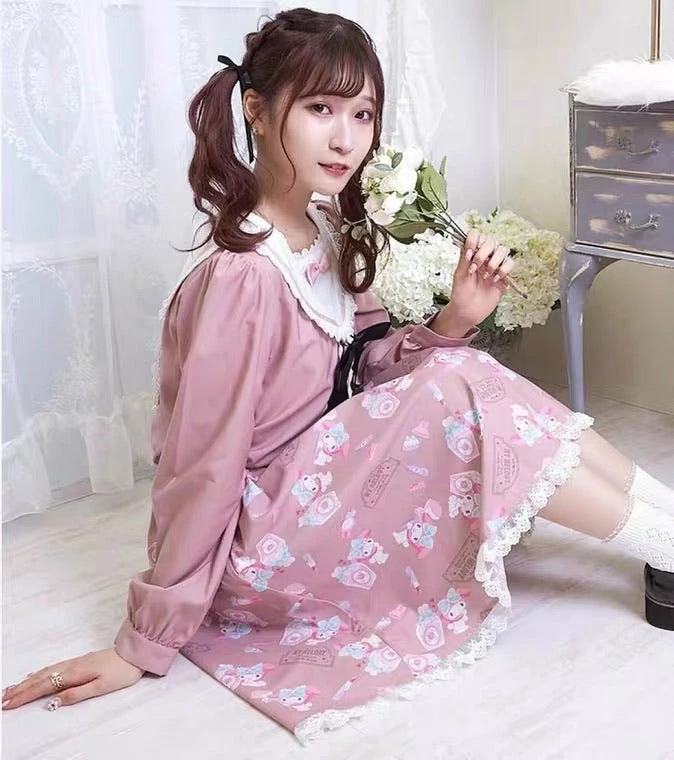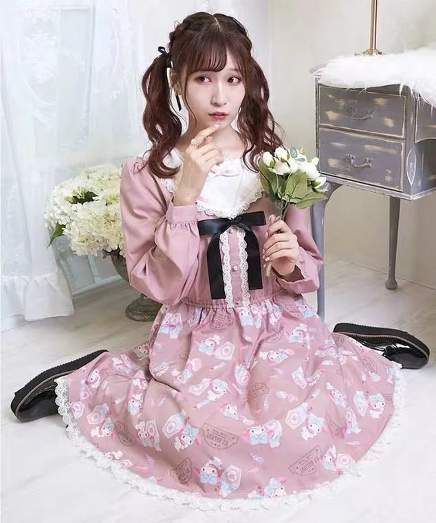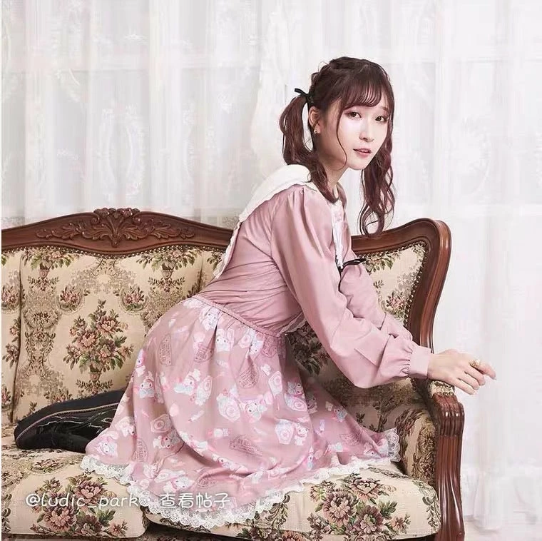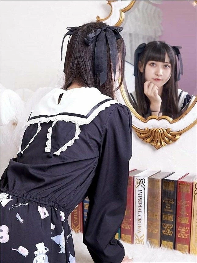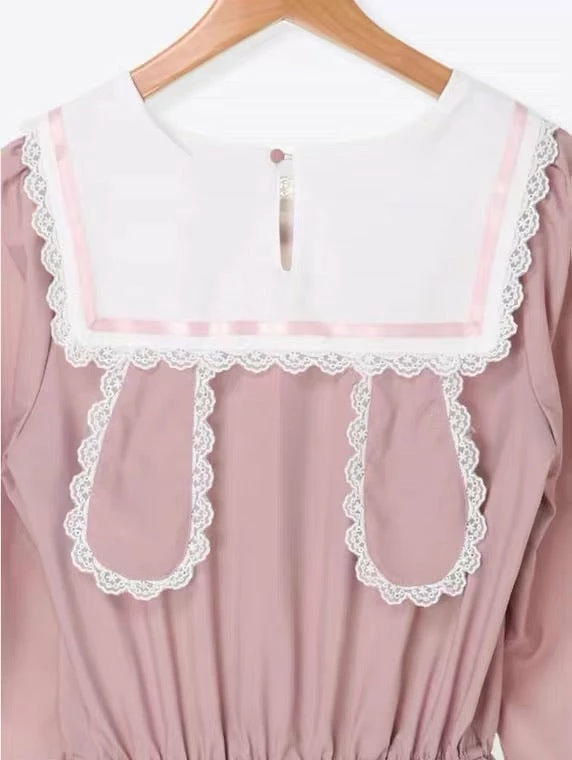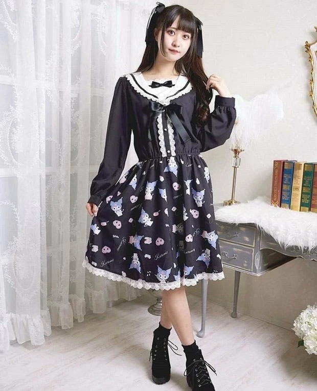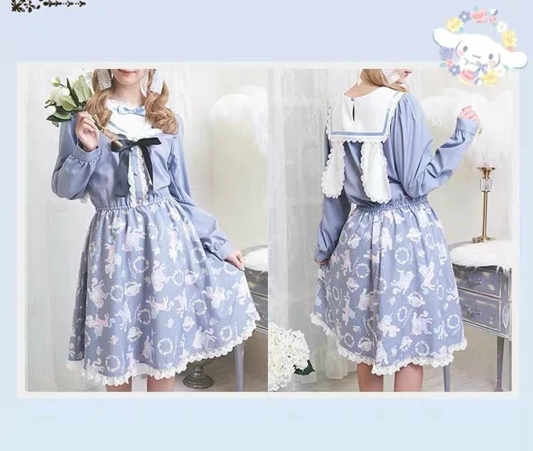 EverythingCuteClub My Melody / Cinnamoroll / Kuromi Navy Collar Rabbit Ear Dress