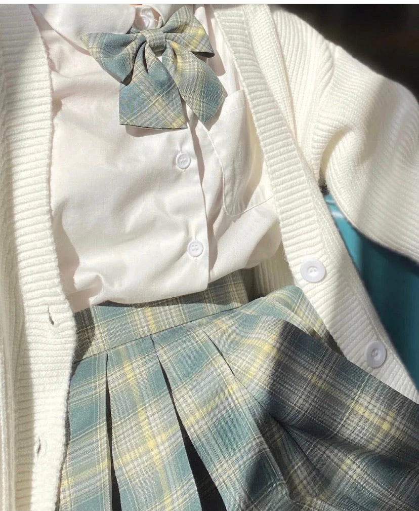 EverythingCuteClub Pine Forest Green Skirt Plaid Pleated Jk Skirt
