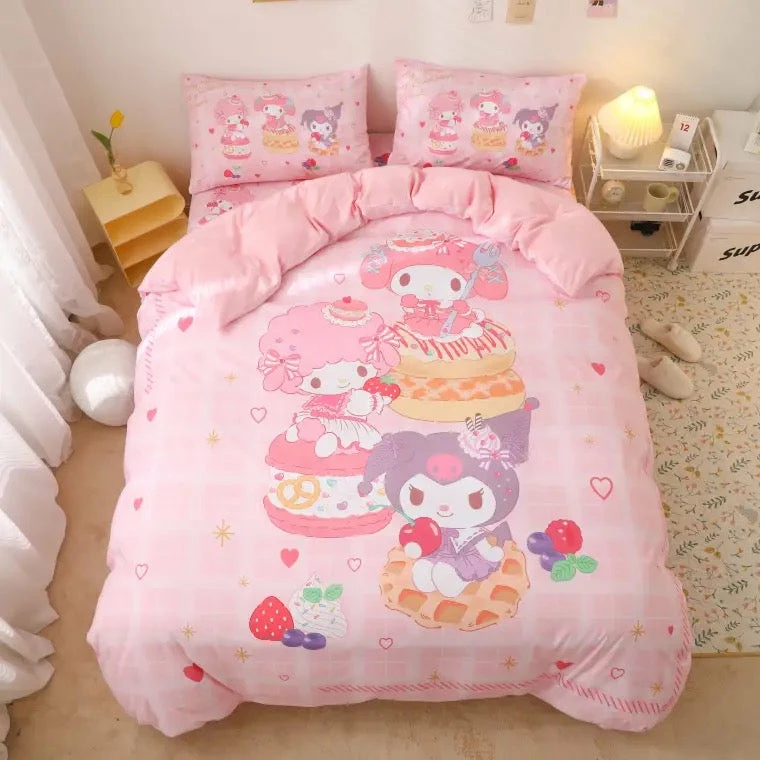 Duvet cover (not duvet) + 2 pillow cases + bed sheet (covered mattress) Â