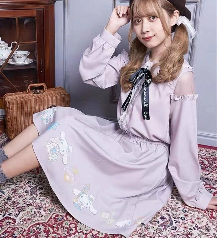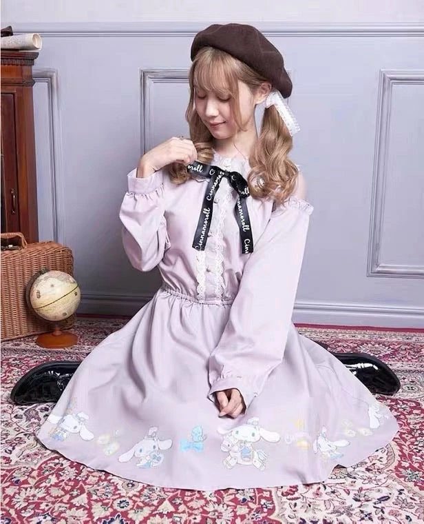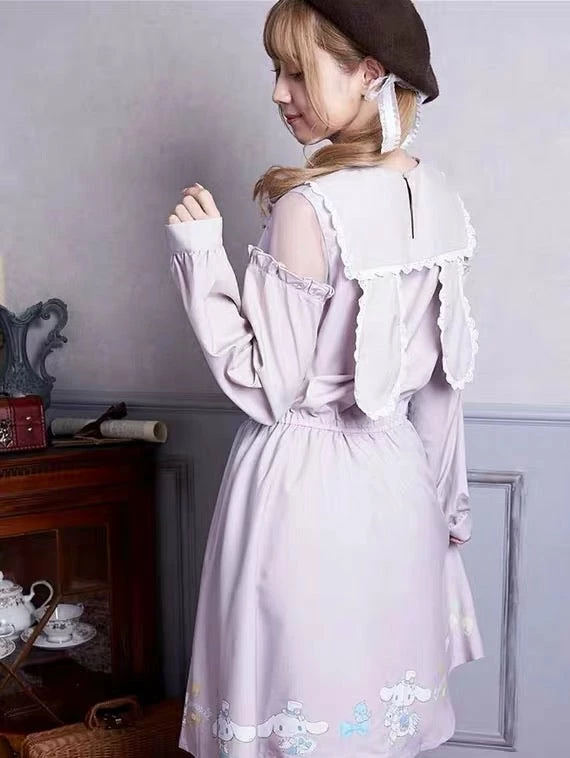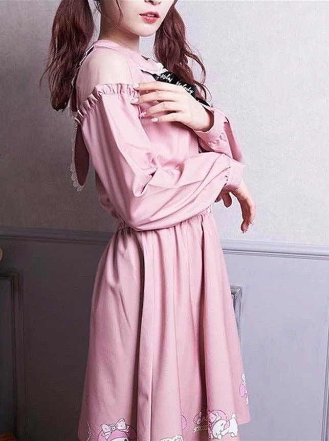 EverythingCuteClub Spring 2021 My Melody / Cinnamoroll / Kuromi Off Shoulder Rabbit Ear Dress Dress + Rompers