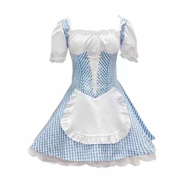 EverythingCuteClub Sweetie Maid Style Blue Plaid Costume Lingerie Cosplay